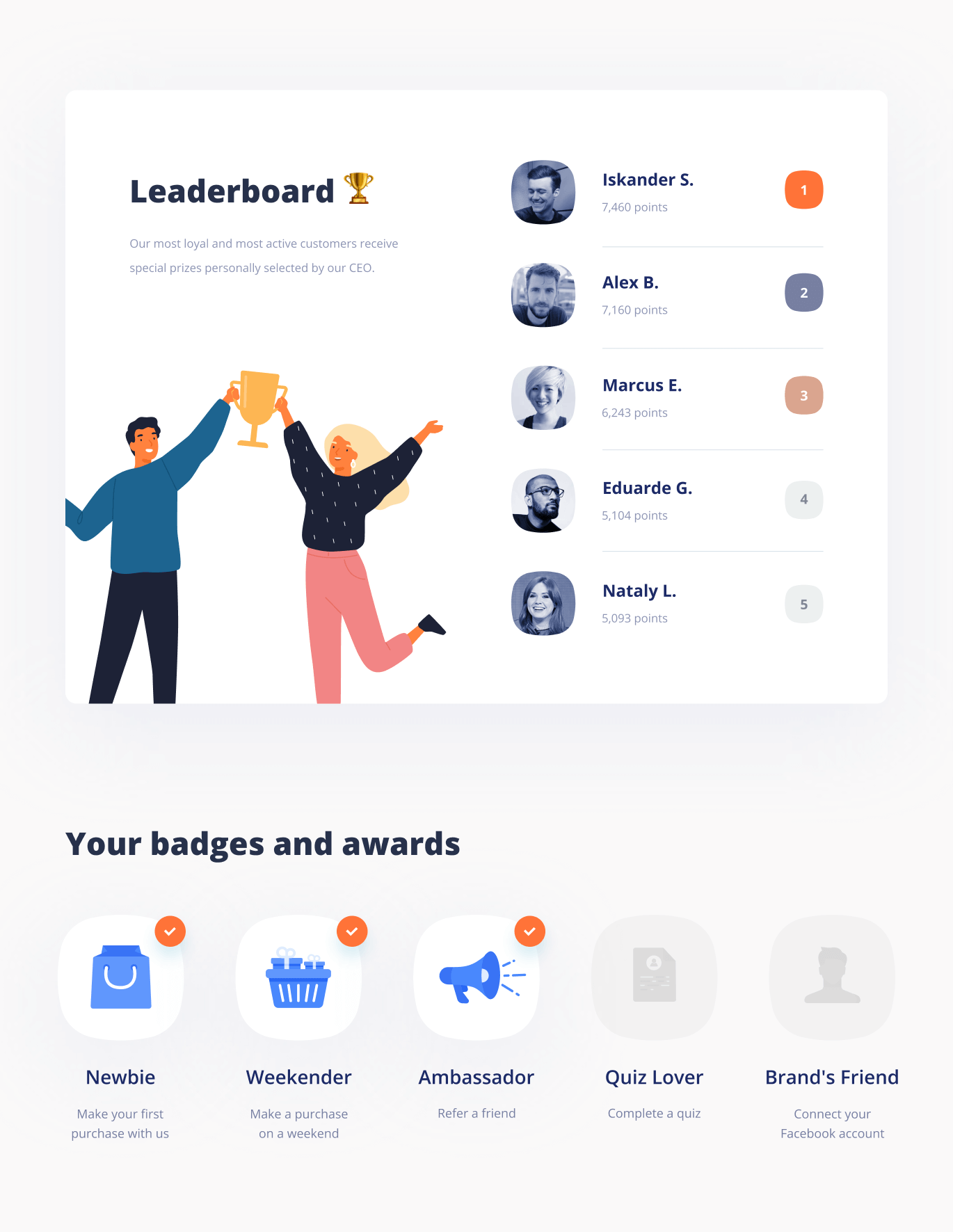 Incorporate game mechanics, such as leaderboards, progress bars and badges, into your loyalty program in order to engage your customers even more.